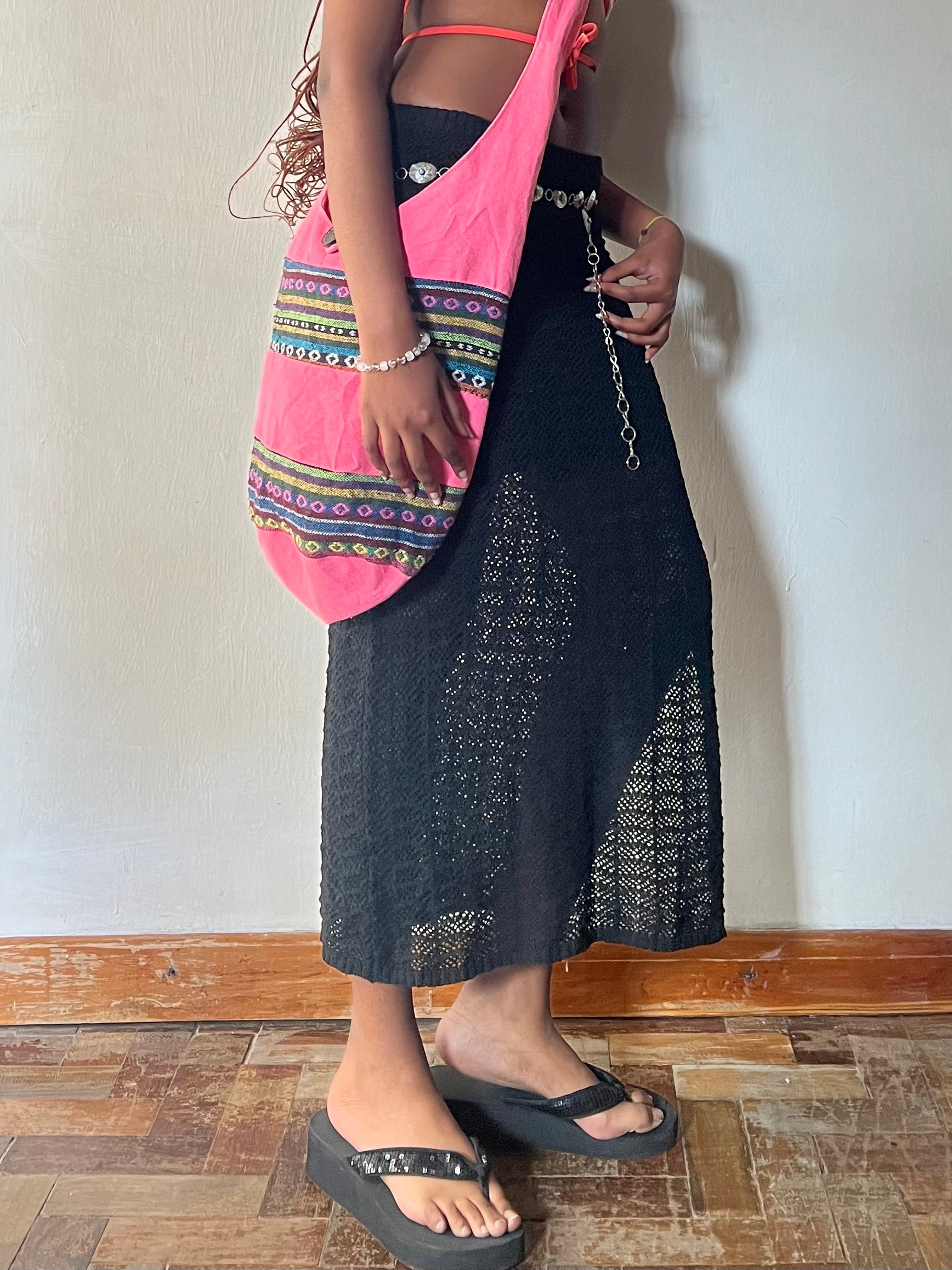 Black Crochet Maxi Skirt