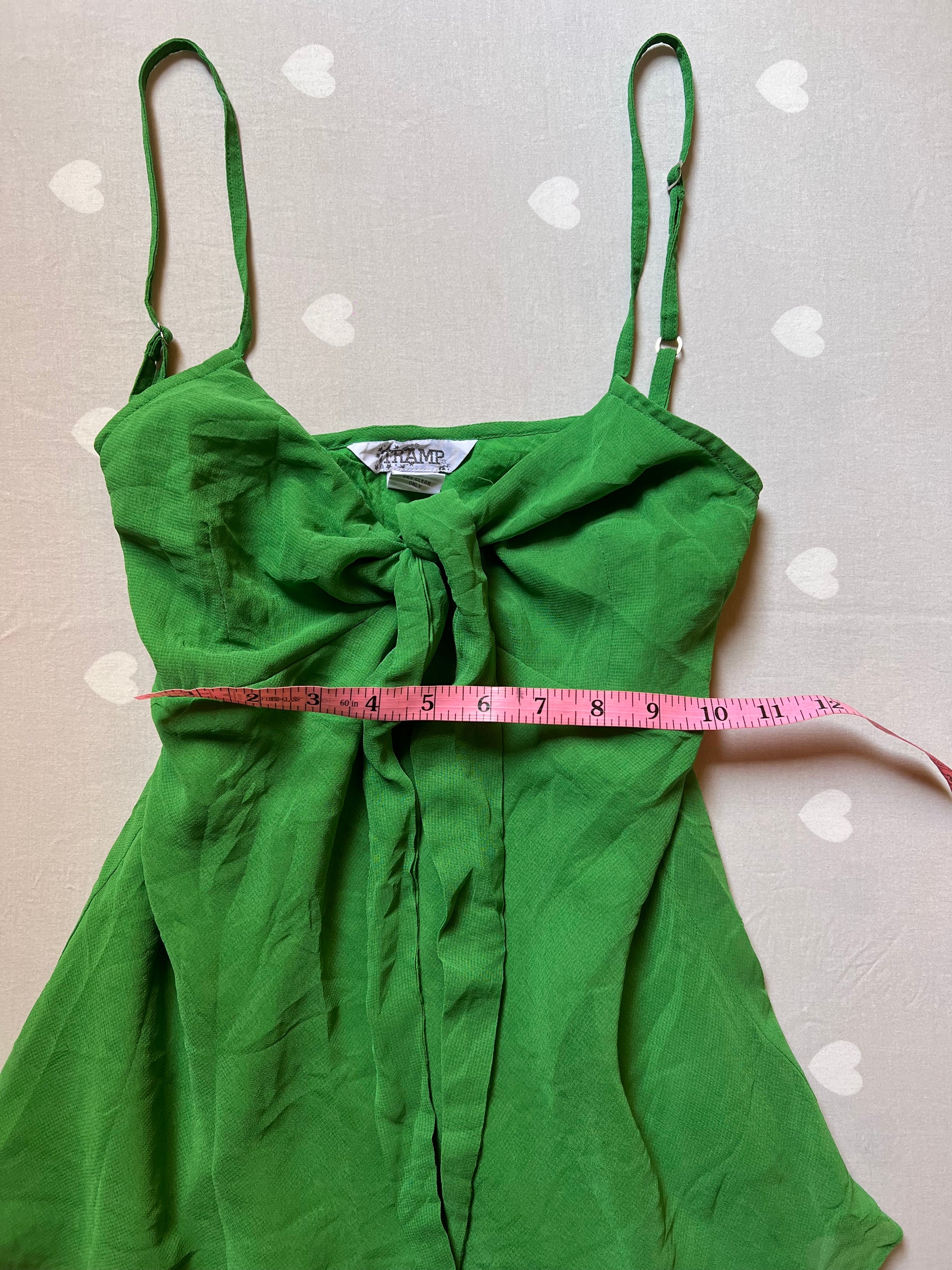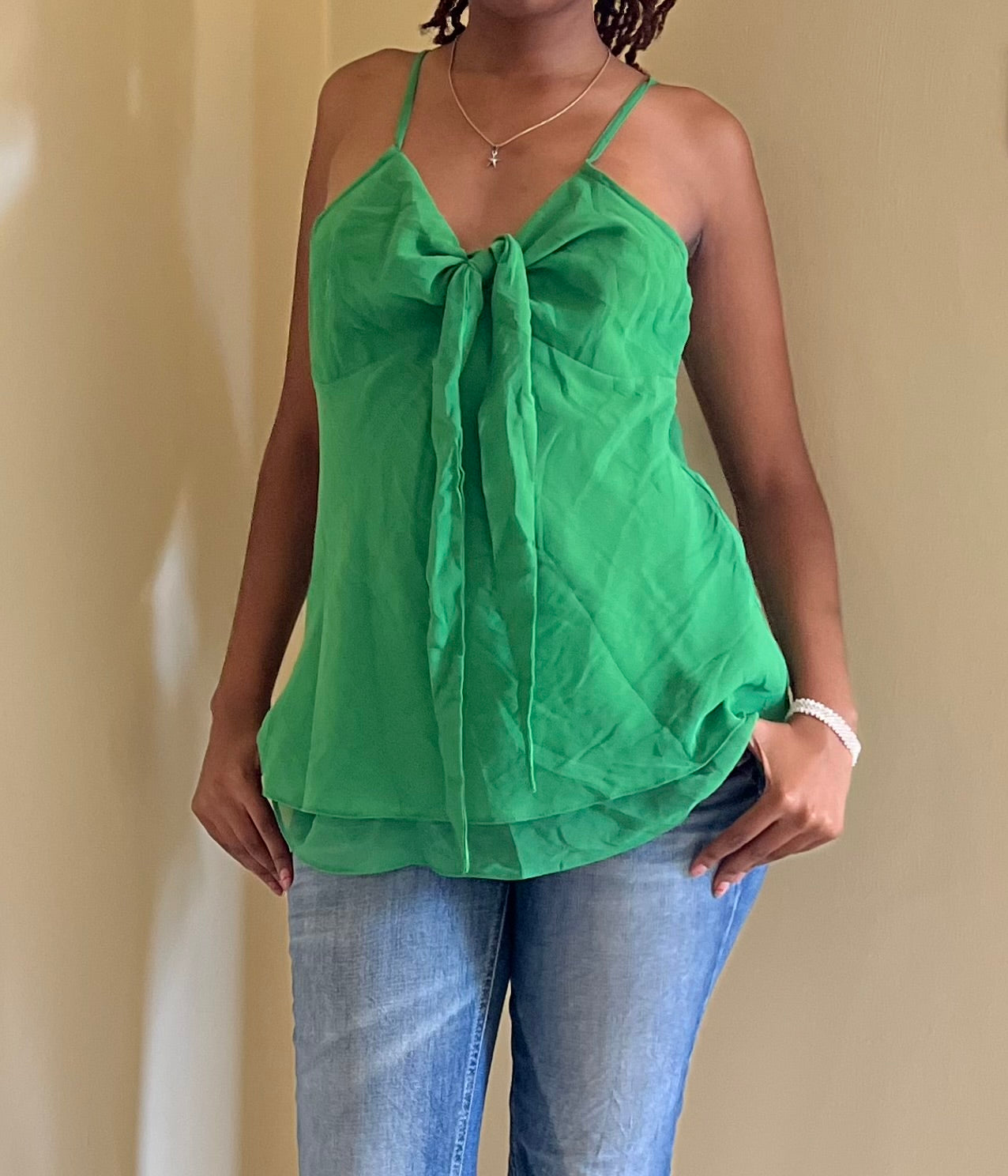 Cute green flowy top with delicate ribbon details at the bust