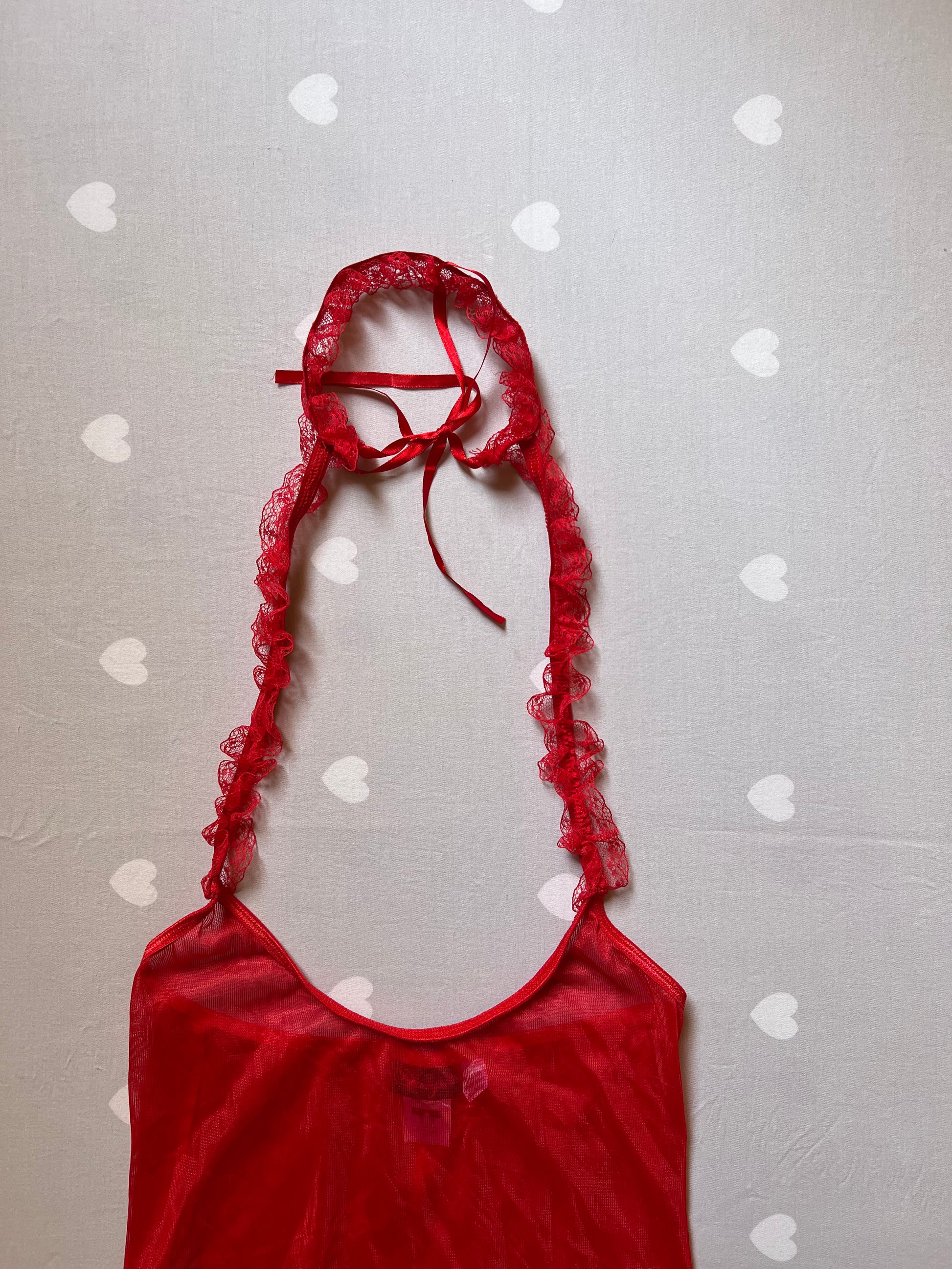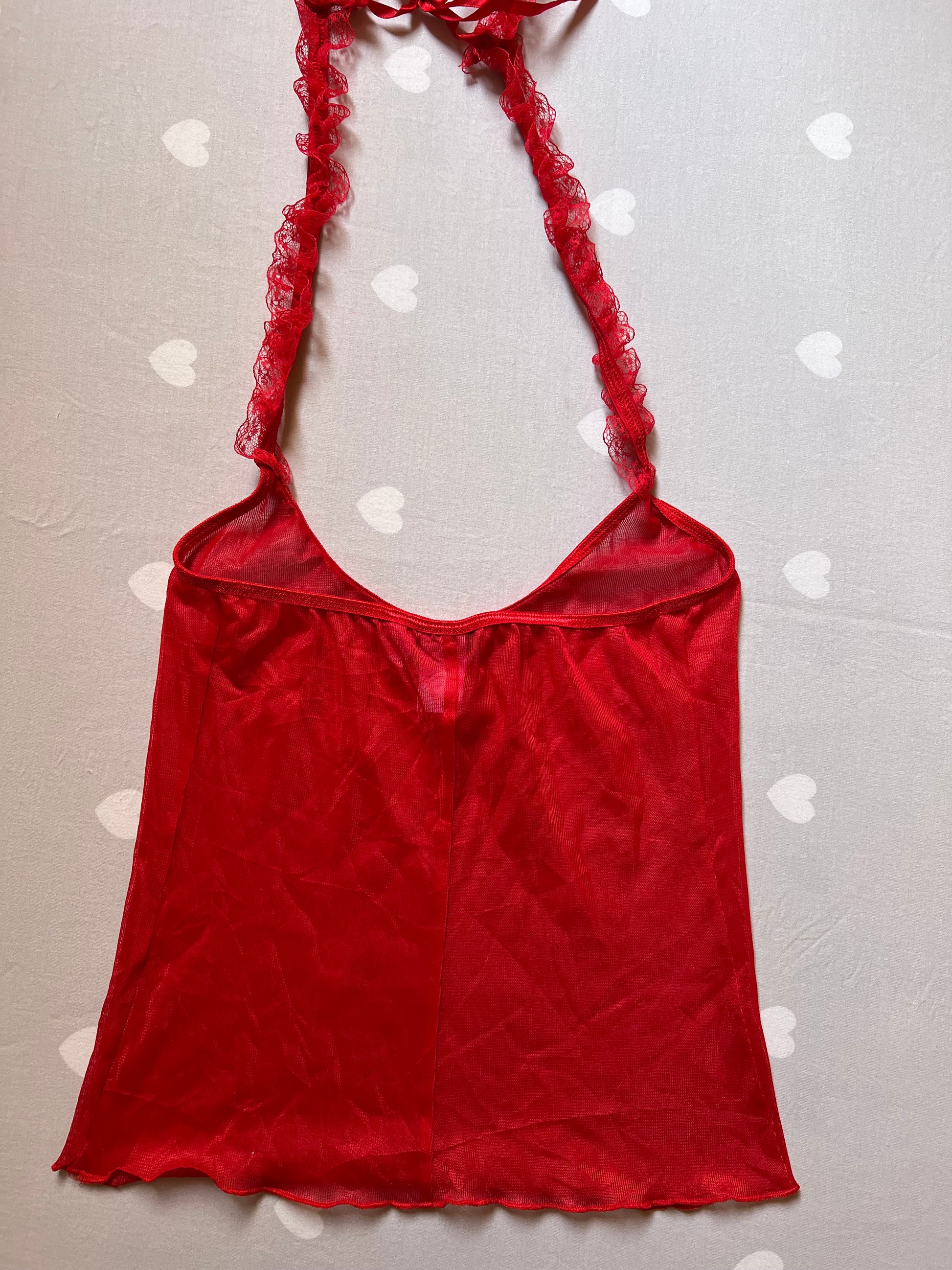 Sheer red lace cami top