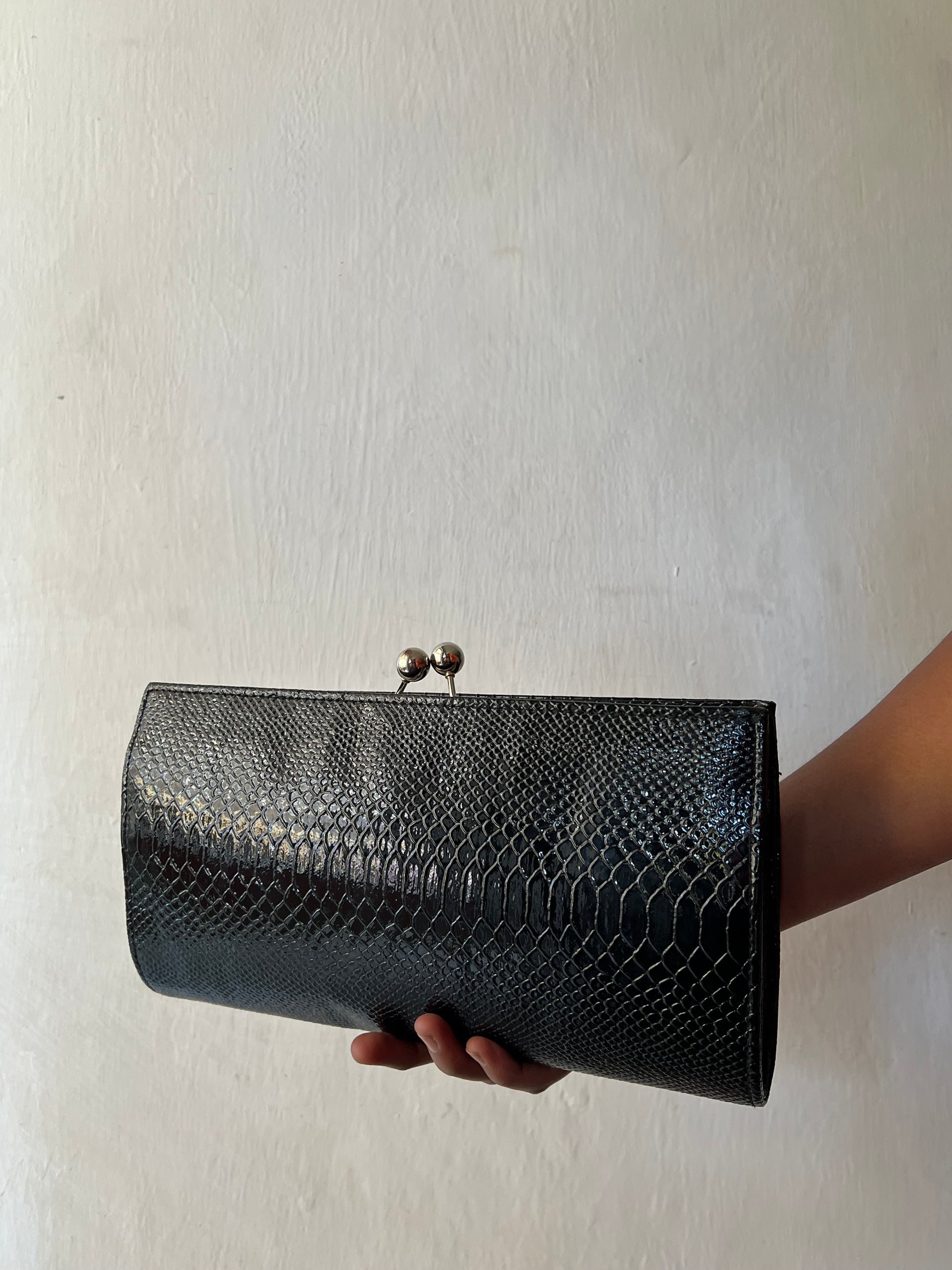 Studded snake skin print leather clasp purse